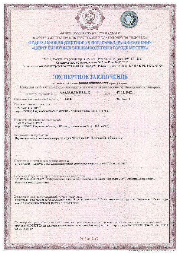 Самовыравнивающаяся полиуретановая композиция. Предназначена для устройства дезактивируемых монолитных напольных покрытий на объектах атомной энергетики.