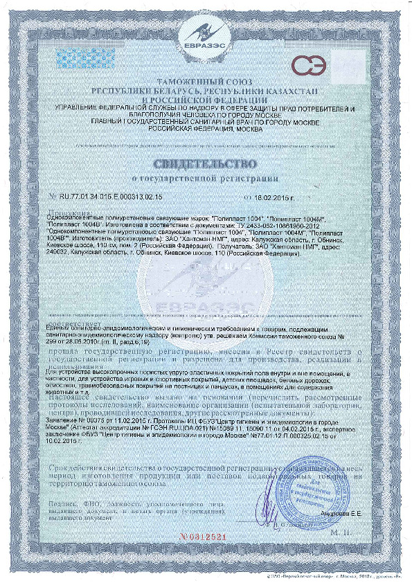 Полимерное связующее для спортивных покрытий. Хорошо взаимодействует с различными видами фракционных наполнителей. Смешивается с ними в пропорции 1:4,2. Средняя скорость полимеризации — от 1 до 5 дней.