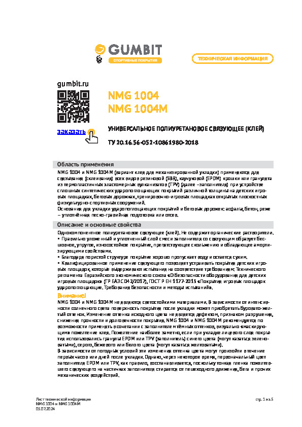 Полимерное связующее. Предназначено для создания спортивных покрытий из резиновой крошки. Хорошо взаимодействует с наполнителем даже при низких температурах — от 3 °C.