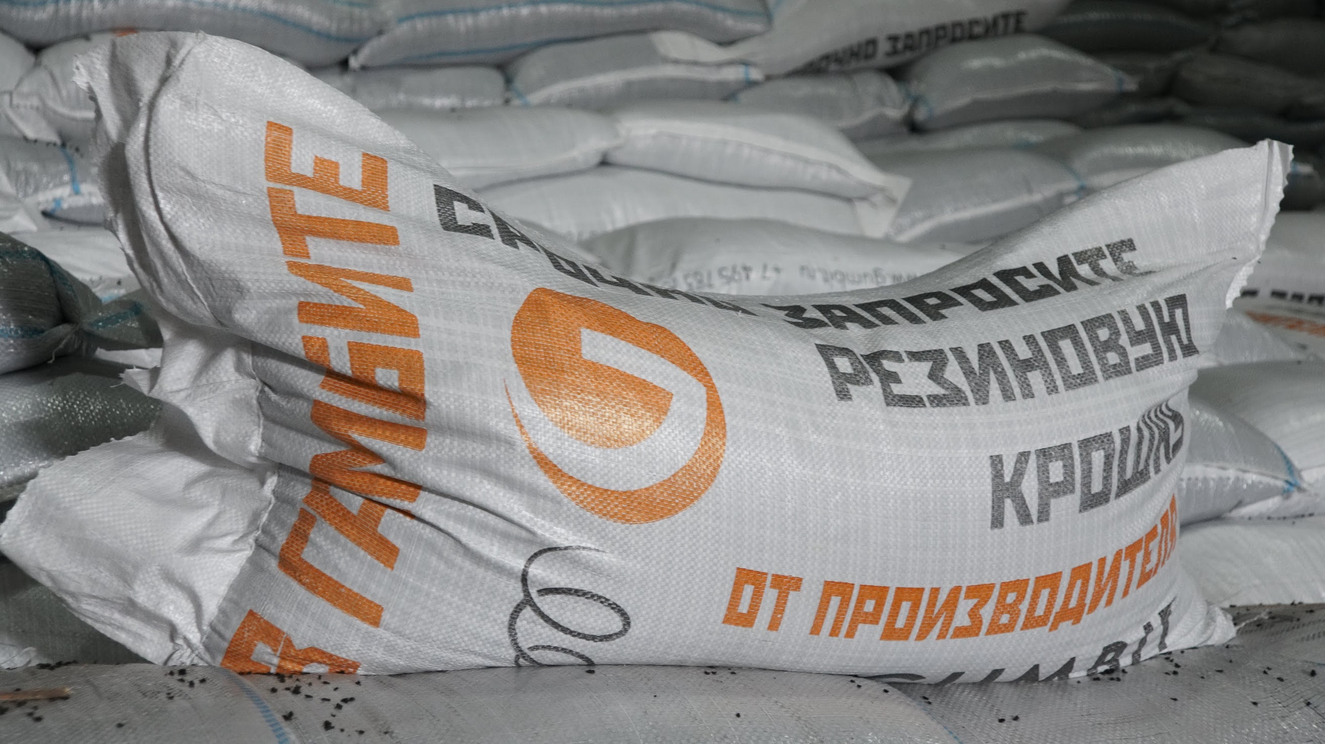 Резиновая крошка мелкой фракции предназначена для создания верхнего напыляемого слоя спортивных покрытий и для засыпки искусственного газона. Гранулят расфасован в биг беги. Масса резиновой крошки в одном мешке — 1000 кг.